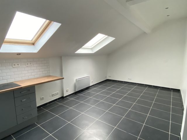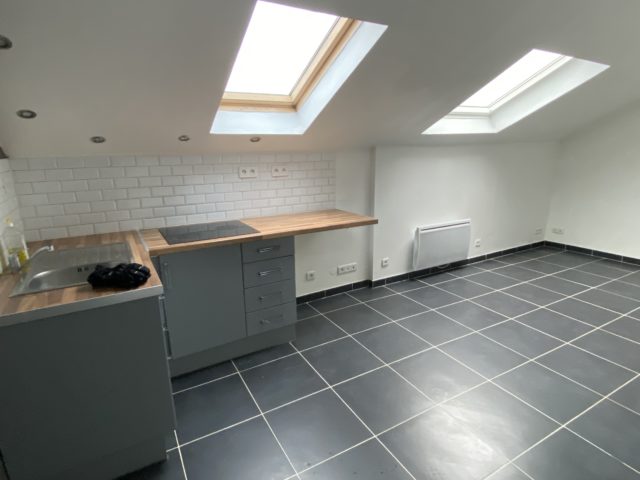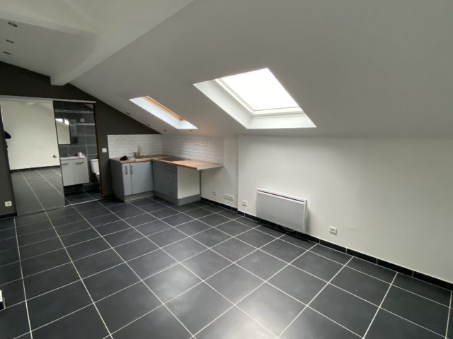Appartement de 18.26 m² comprenant : une pièce principale avec coin cuisine, salle d’eau avec wc.